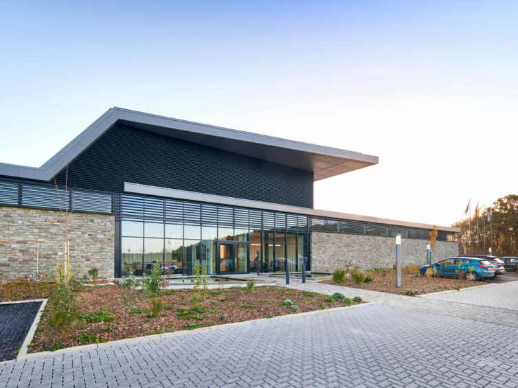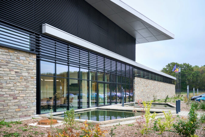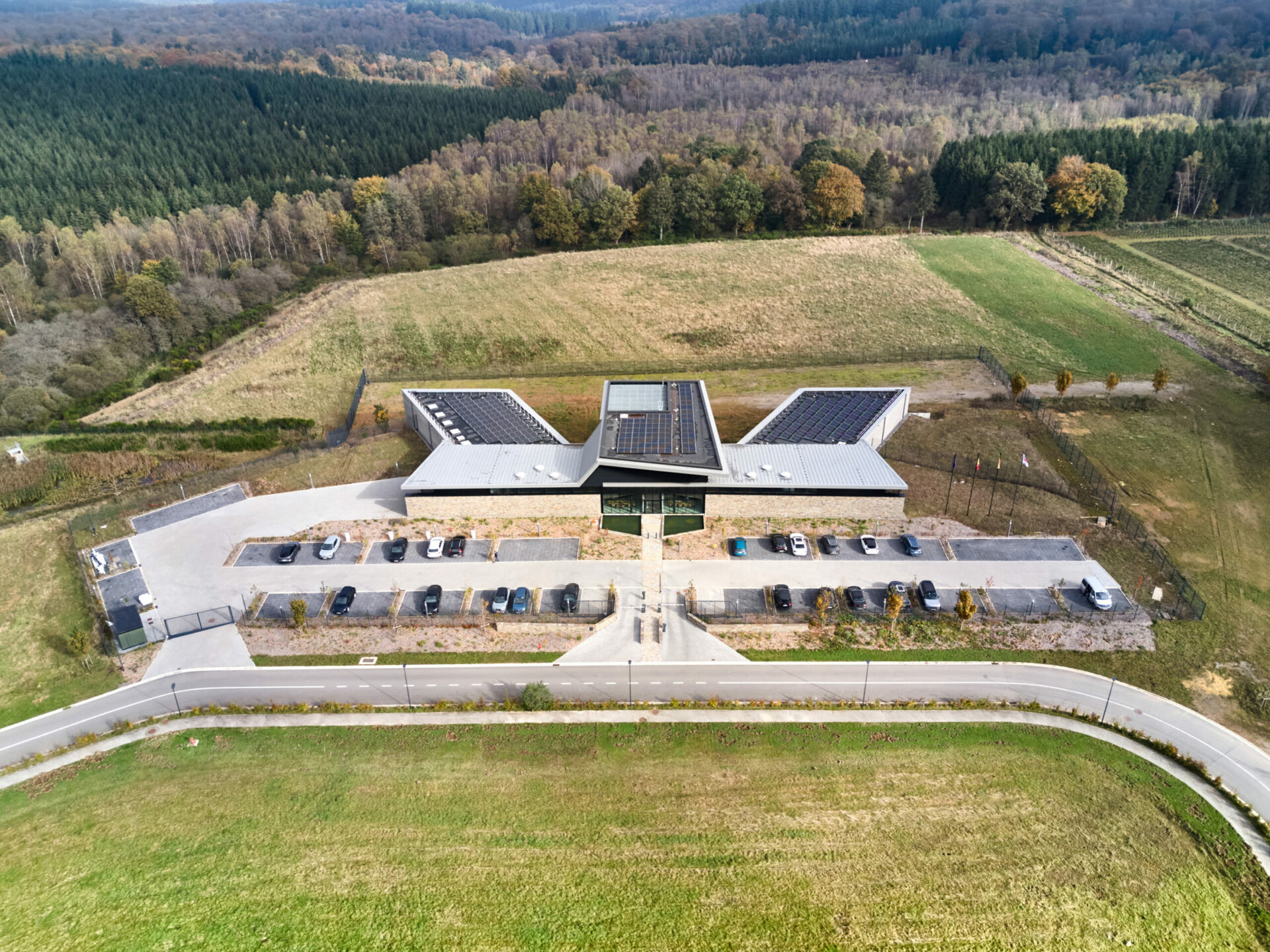 An in-depth architectural reflection on the integration of the building within its context was conducted in order to achieve a harmonious project, fully embedded in its natural environment and with a low ecological impact. The project is BREEAM Excellent certified, demonstrating its strong commitment to sustainable development. The selected materials are 100% Belgian, including the granito finishes (white Verona marble, black granito with brass joints).